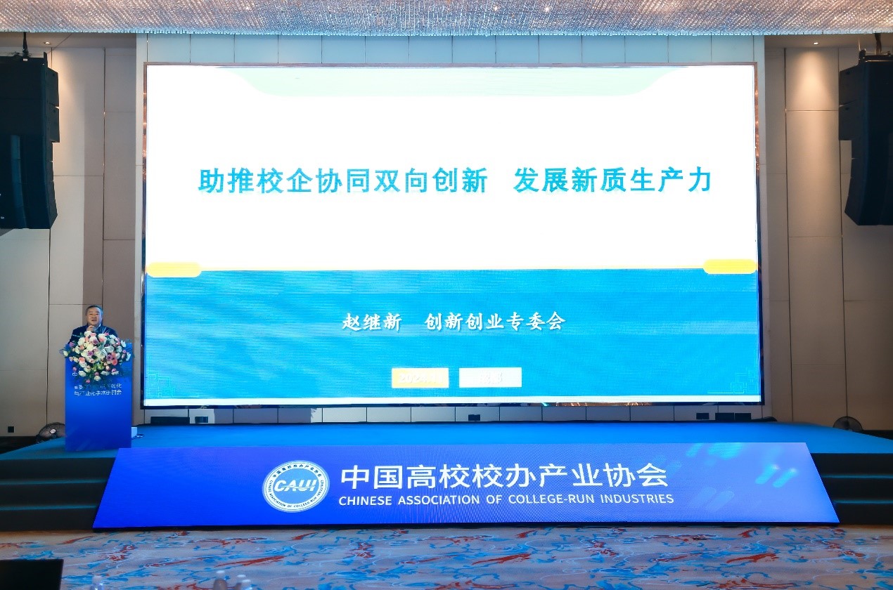 在研讨会上,beat365唯一官方网站院长赵继新教授作为中国高校校办产业协会创新创业专业委员会会长做了名为《助推校企协同双向创新 发展新质生产力》的主题报告。解析了新质生产力、全要素生产率和高质量发展的内涵,提出加快培育新质生产力的重点工作,并结合科技、教育和人才三个重大发展战略阐述创新创业专业委员会的工作目标、专注领域和工作方向,为企业和高校实现双向赋能发展搭建平台。