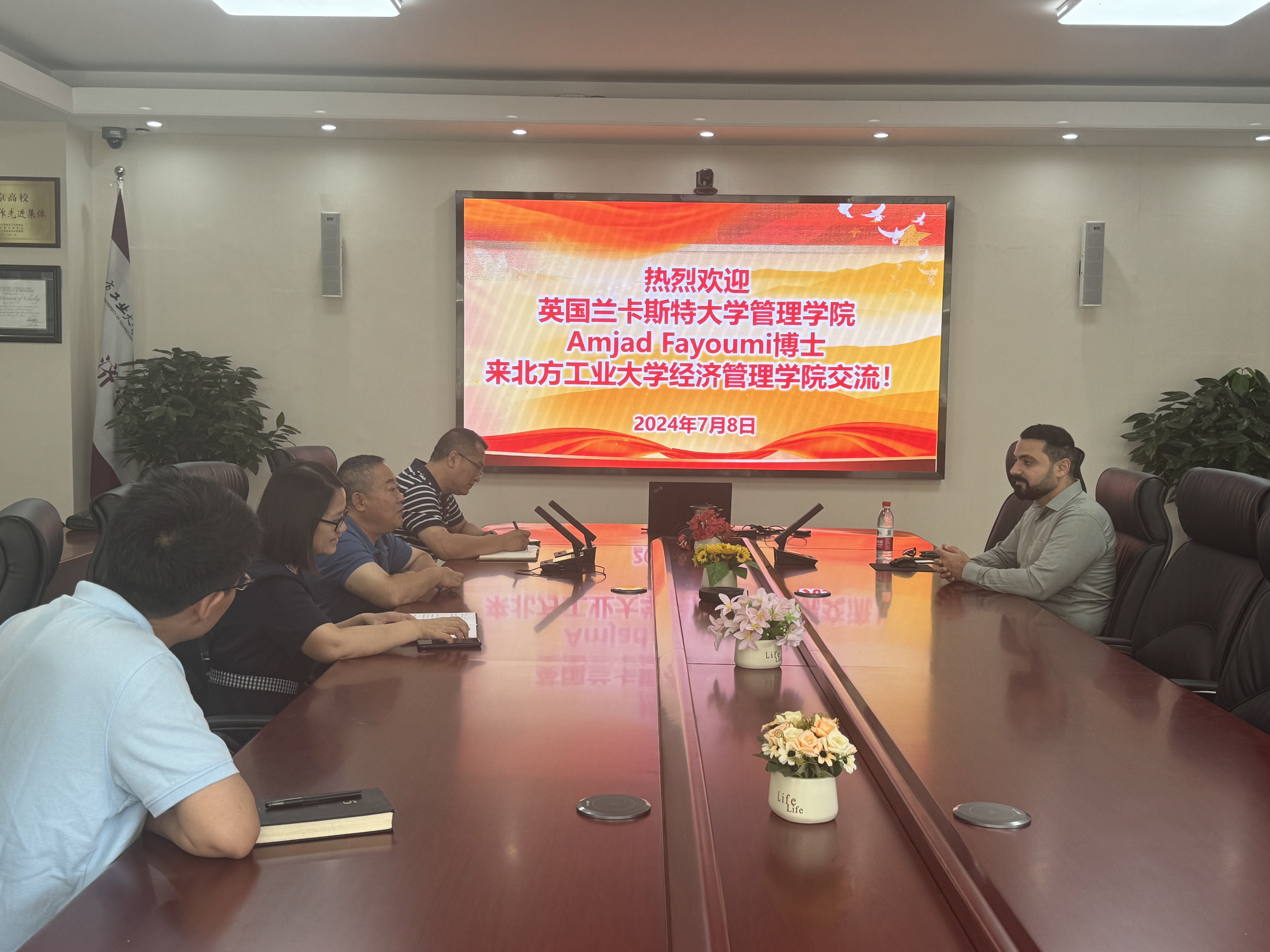 2024年7月8日上午,英国兰卡斯特大学管理学院Amjad Fayoumi博士到beat365唯一官方网站进行交流,学院院长赵继新、副院长孙强、副院长蒋贵凰及教师代表王学成博士参加了交流。