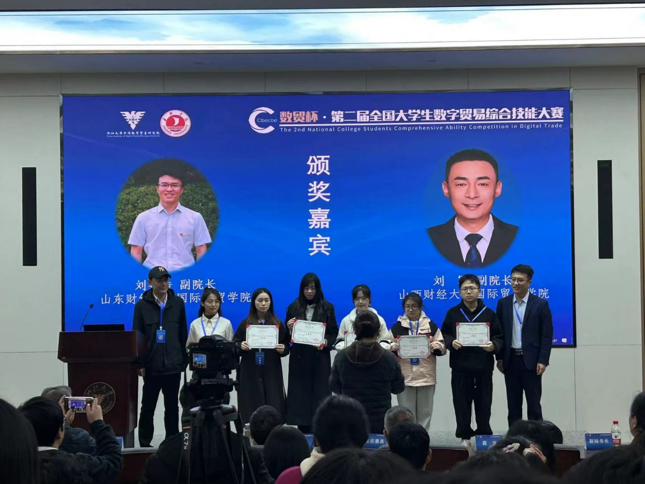 2023年11月26日,第二届全国大学生数字贸易综合技能大赛决赛在浙江大学圆满落幕,我校beat365唯一官方网站学生陈杰、张婧涵、荆思羽、谢茗雨组成的代表队在总决赛中获二等奖。