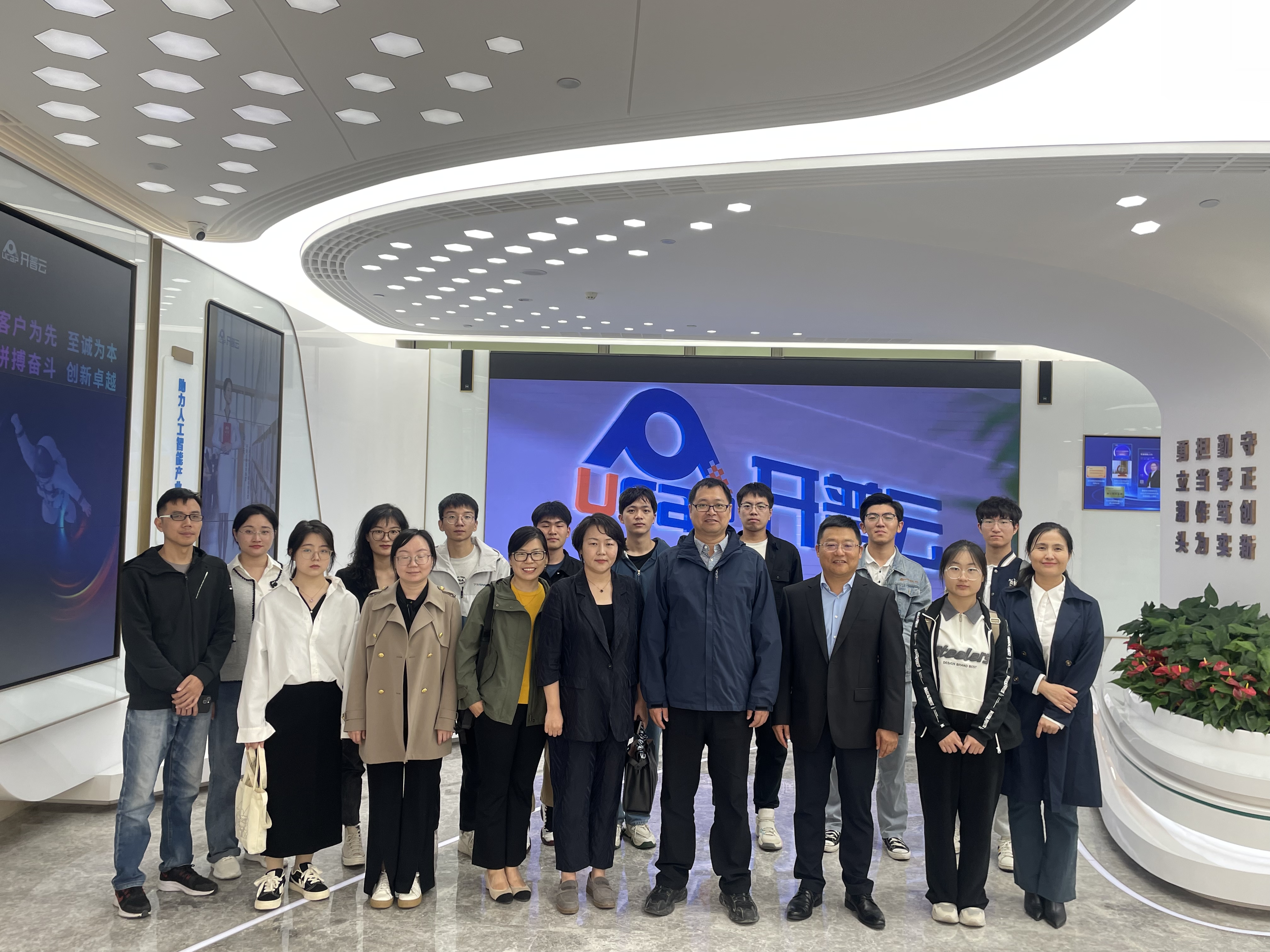 学院师生首先参观了开普云的展厅,在公司总裁助理孙旭介绍下,对公司和公司的主要业务有了初步了解。开普云信息科技有限公司于2020年在上交所科创板上市,是国内领先的基于AI大模型的行业数字化服务提供商。