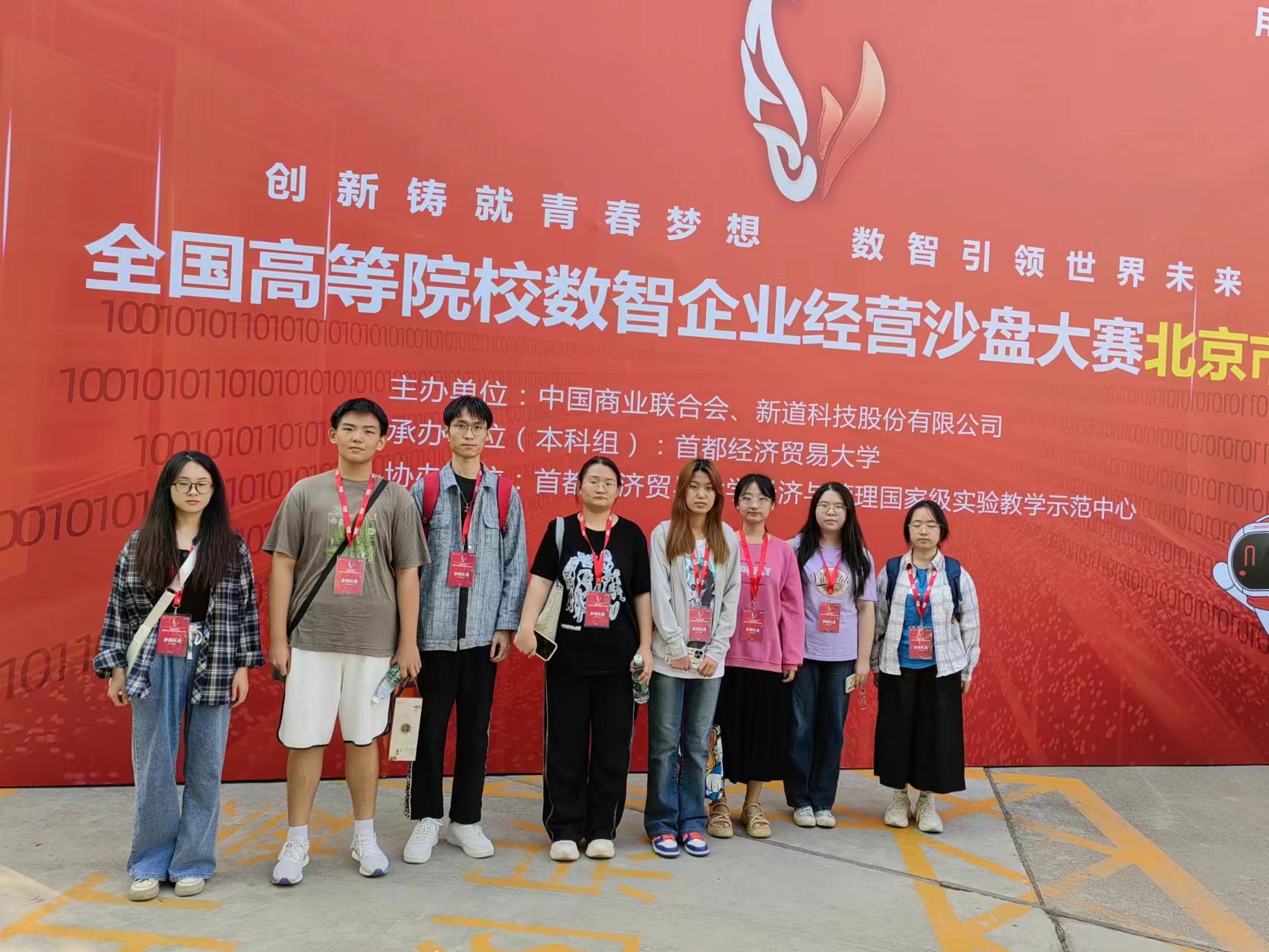我校会21级李佳琳、翁贻龙、李黎阳,会22级张浩翔、徐博扬、韦怡童、郝书瑶、刘蔚璞同学通过第一阶段校级选拔后,组成参赛队A06和B11,与其他高校23支队伍一起入围北京市选拔赛。他们置身商业实战场景,真实体验商业竞争的激烈性,最终分获北京市赛二等奖和三等奖,beat365唯一官方网站A06更代表北京市出征郑州举办的全国总决赛。