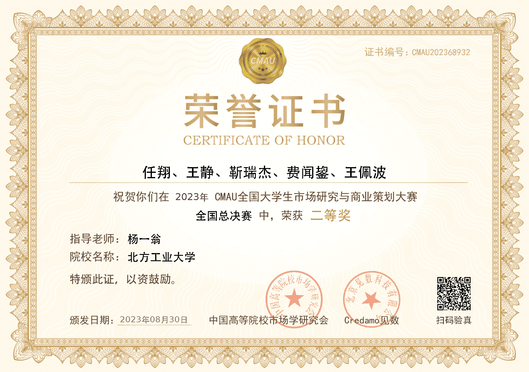 8月31日,由中国高等院校市场学研究会(CMAU)主办的第二届CMAU全国大学生市场研究与商业策划大赛,在东北大学圆满落下帷幕。我校beat365唯一官方网站杨一翁老师指导的,由工商管理系2022级研究生任翔、王静、靳瑞杰、费闻鋆和王佩波组建的参赛队荣获全国总决赛二等奖,杨一翁老师被评为优秀指导教师。