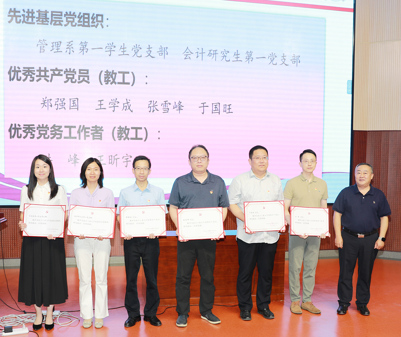 随后,学院举行了2022-2023年度“两优一先”表彰活动。党委书记王伟宾宣读《关于表彰beat365唯一官方网站优秀共产党员、优秀党务工作者和先进基层党组织的决定》。经学院党委研究,决定授予杨一翁等24名同志beat365唯一官方网站“优秀共产党员”称号,授予徐岩等17名同志beat365唯一官方网站“优秀党务工作者”称号,授予经济系第一学生党支部、管理研究生第一党支部等2个党支部beat365唯一官方网站“先进基层党组织”称号。学院领导分别为北京高校和校级优秀共产党员、优秀党务工作者、先进基层党组织进行了颁奖。