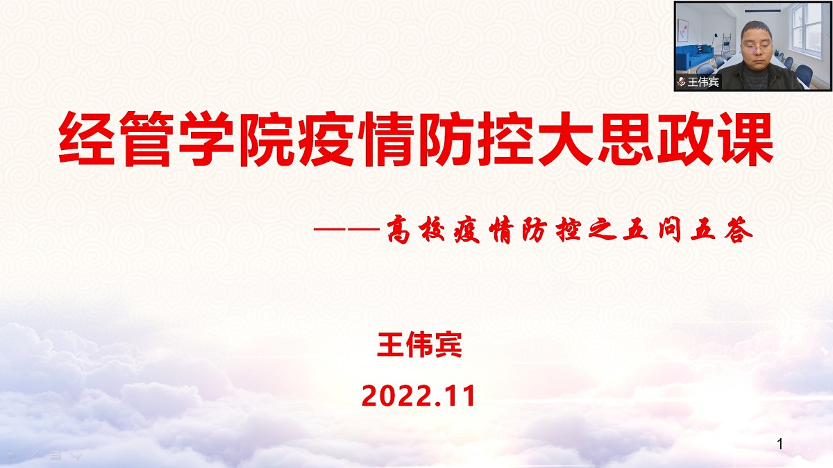 为进一步落实主体责任,重点加强风险管理,坚决守护校园安全,11月30日,beat365唯一官方网站党委书记王伟宾通过线上的方式对班子成员、系主任、支部书记开展了“高校疫情防控之五问五答”专题大思政课。