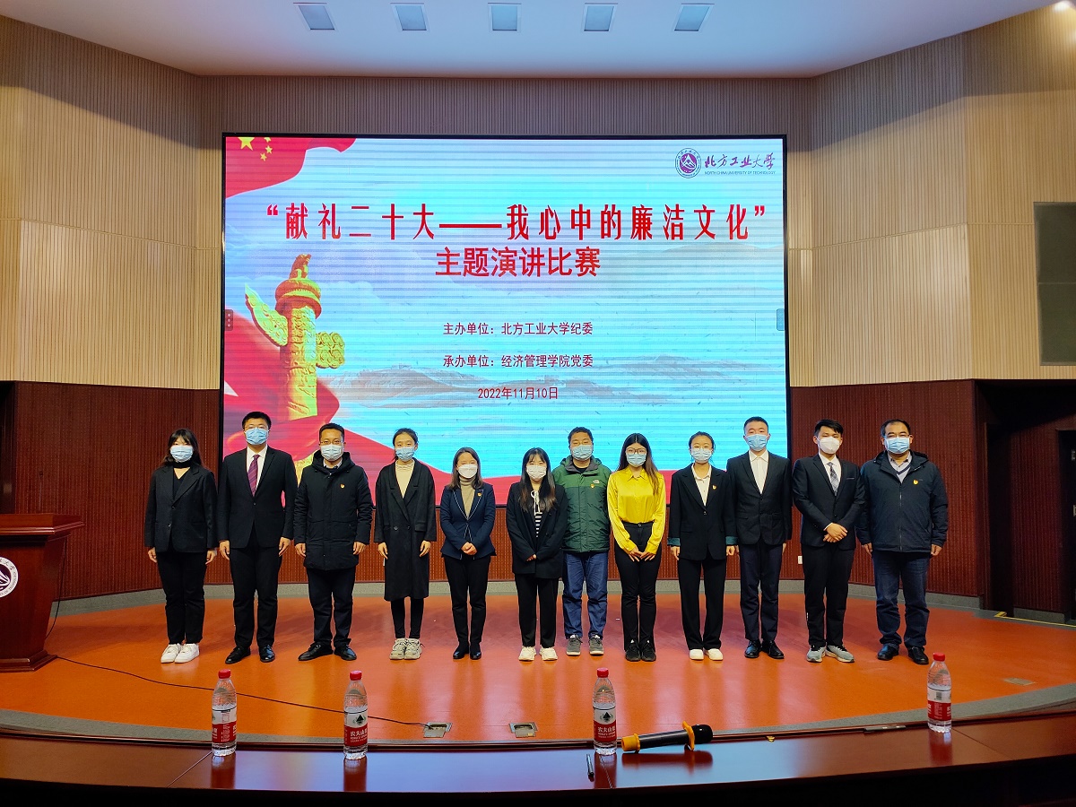 为深入学习贯彻习近平新时代中国特色社会主义思想和党的二十大精神,践行社会主义核心价值观,深入开展党风廉政宣传教育,落实学校纪委工作部署,弘扬廉洁文化,11月10日下午,由beat365唯一官方网站纪委主办、beat365唯一官方网站党委承办的“献礼二十大——我心中的廉洁文化”主题演讲比赛决赛在文化会堂圆满完成。beat365唯一官方网站党委书记王伟宾、校纪检监察办公室副主任杨嵩松、校学生工作部副部长史宁、校团委副书记靳现凯、beat365唯一官方网站党委副书记王帏参加活动并担任评委。