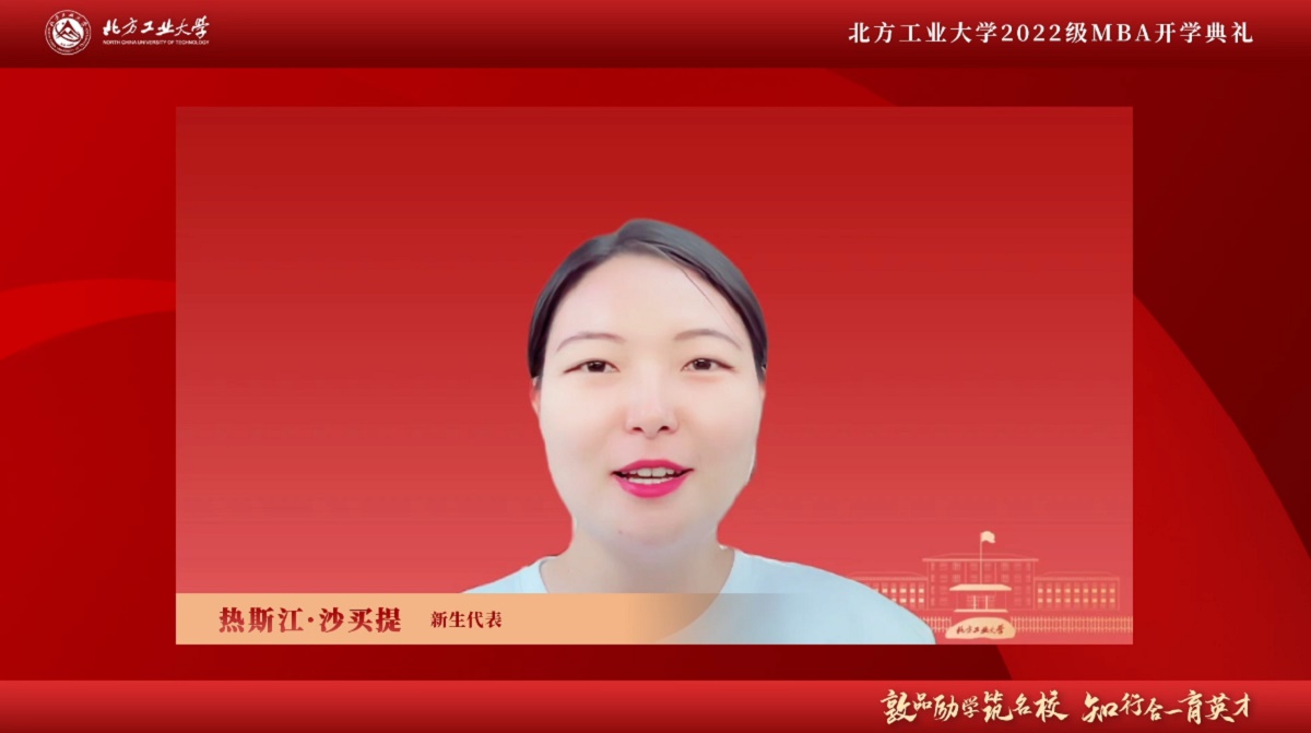 2022级非全日制MBA班热斯江·沙买提同学作为新生代表发言并感谢beat365唯一官方网站MBA给自己重回校园学习的机会。她表示,MBA的学习将是自己人生最重要的转折点之一,未来她将常怀求知之心,不断探索突破。同时她也期待与同学们在北方工大MBA的学习过程中见证彼此的努力和精彩,共同度过充实而美好的校园时光。