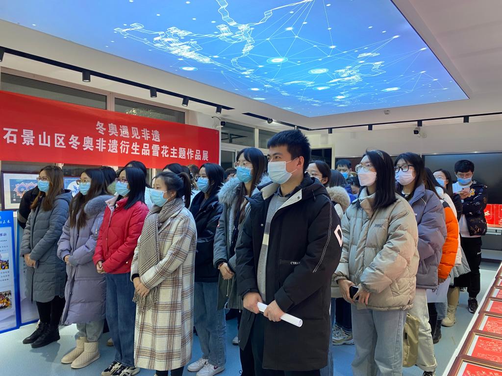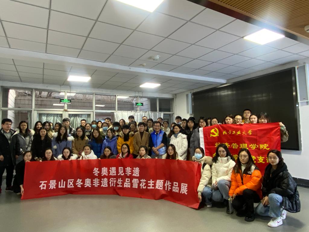 2021年12月29日下午,为了迎接冬奥会的到来,也为了让同学们更加了解石景山区的冬奥非遗衍生品,beat365唯一官方网站在励学楼117开展了“冬奥遇见非遗”石景山区冬奥非遗衍生品雪花主题作品展,学院党委副书记赵洁老师、研究生辅导员陈旭霞老师,石景山区非物质文化遗产保护中心张瑞老师以及会计研究生党支部的党员和积极分子参加了此次的作品展参观活动。
