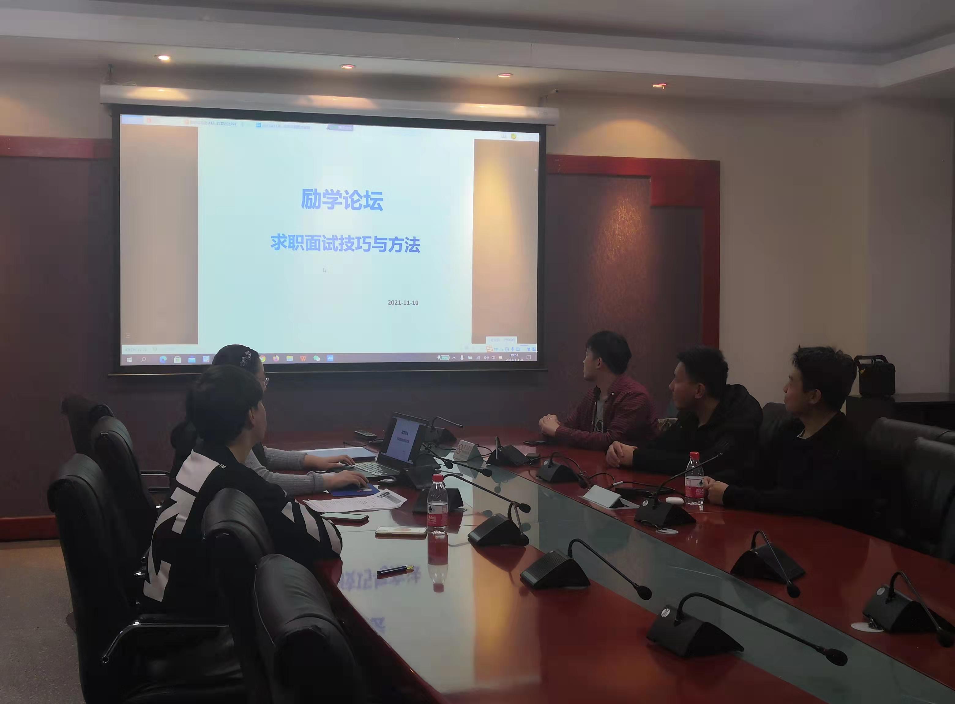 2021年11月10日晚上7:30,beat365唯一官方网站励学论坛在励学楼201会议室举行。为了帮助会计系毕业生在求职面试环节表现出色,获得用人单位的青睐,得到心仪的职位,本期的主题为“求职面试技巧与方法”,由beat365唯一官方网站会计系教师兼教师辅导员贾海波老师主讲,2018级会计系准备就业求职的部分学生通过线上和线下的方式参加了本次论坛。