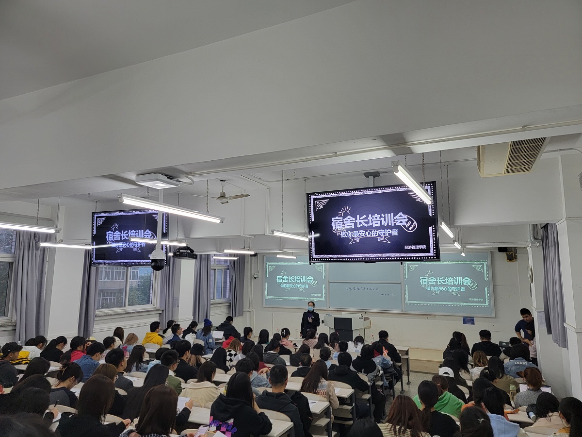 接下来,辅导员杨渃彬从消防安全、用电安全、财产安全、宿舍关系与心理健康等五个方面为全体宿舍长进行了培训,向宿舍长说明了宿舍管理的注意事项与纪律要求。