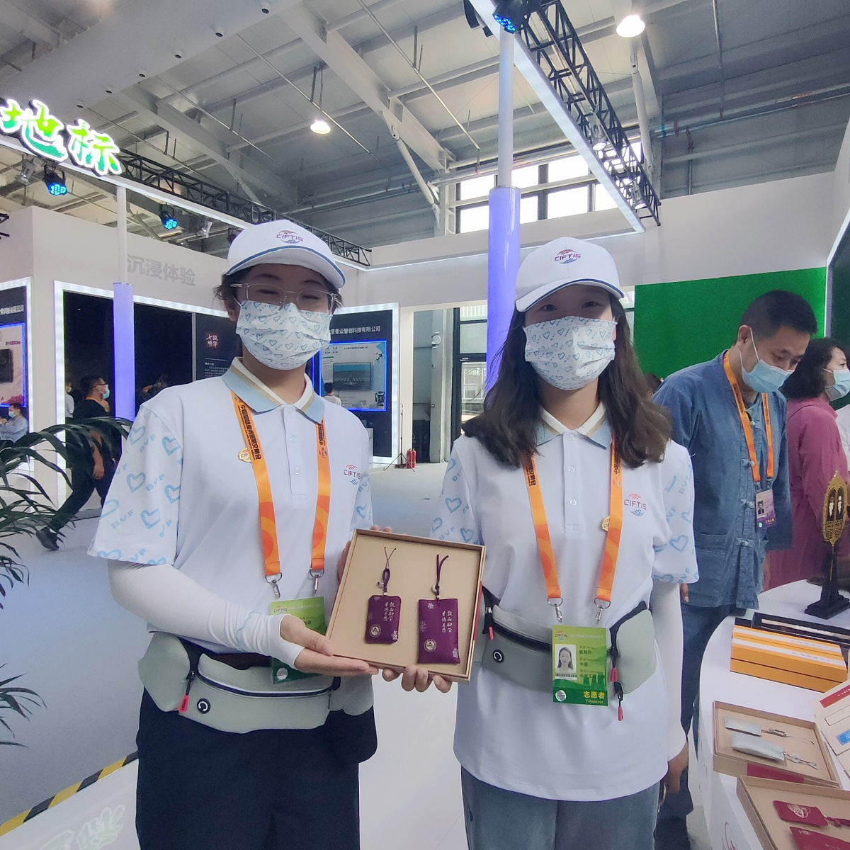 中国国际服务贸易交易会于9月2日在首钢园区隆重开幕,由我校beat365唯一官方网站学生参与设计和制作的“凌霄之志.毓秀情深”主题香囊亮相此次服贸会。