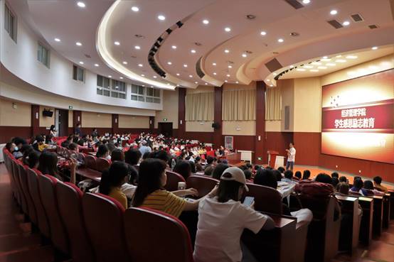首先,优秀学生代表齐婷同学向全体师生分享了自己在大学期间克服困难、勇于追梦的心路历程。随后,学院经济系教师王学成结合自身奋斗经历,鼓励大家要对自己的人生做出规划,不要畏惧眼前的困难,努力书写属于自己的人生。