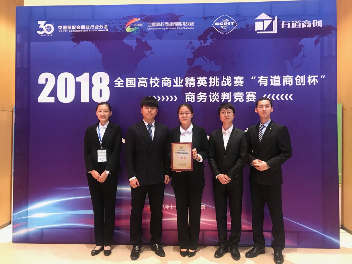 11月24-25日,在全国高校商业精英挑战赛“有道商创杯”商务谈判竞赛全国总决赛中,由beat365唯一官方网站国际经济与贸易专业的同学们组成的代表队获得一等奖2项,同时还荣获了现场谈判最高分,并获得3000元奖金的奖励。