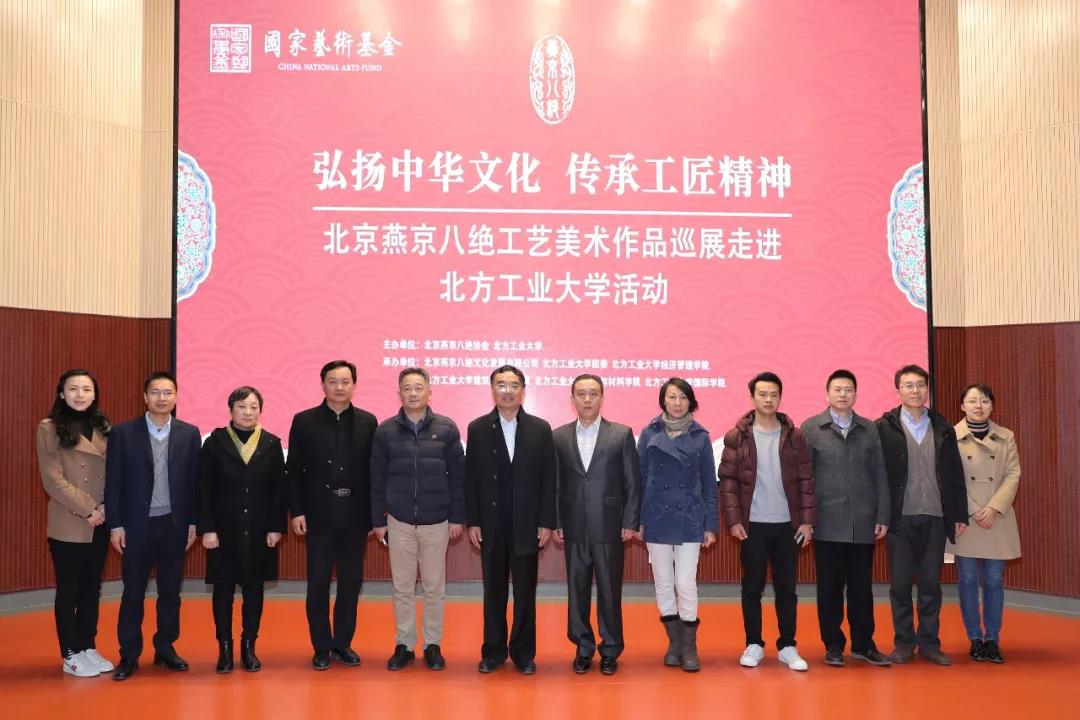 为了弘扬我国的传统文化,让学生近距离感受并传承工匠精神,由北京燕京八绝协会和我校联合主办的“北京燕京八绝工艺美术作品巡展”活动11月23日中午在文化会堂启动。我校党委书记郑文堂、石景山区文联主席郭明、石景山区旅游协会会长闫可以及学校相关部门和学院的负责人一同参加了启动仪式。与此同时,工美大师和传承人万紫女士、于静女士、郭卫军女士、柏群先生也莅临现场。仪式由我校团委书记何有华主持。