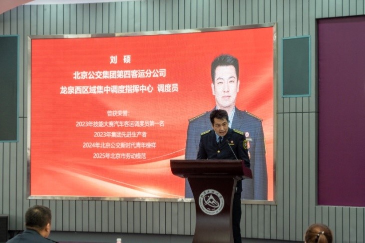 刘硕,龙泉西区域集中调度指挥中心调度员,2025年北京市劳动模范。刘老师以《公交线路上的“最强大脑”》为题,分享了自己从初入调度岗位起,苦练技能、积累经验,在突发状况中灵活调度的工作经历。他不仅自身成长迅速,还倾囊相授助力同事成长,积极参与通学公交规划、优化线路站点等工作,用热爱与坚持在平凡岗位上践行着服务誓言。