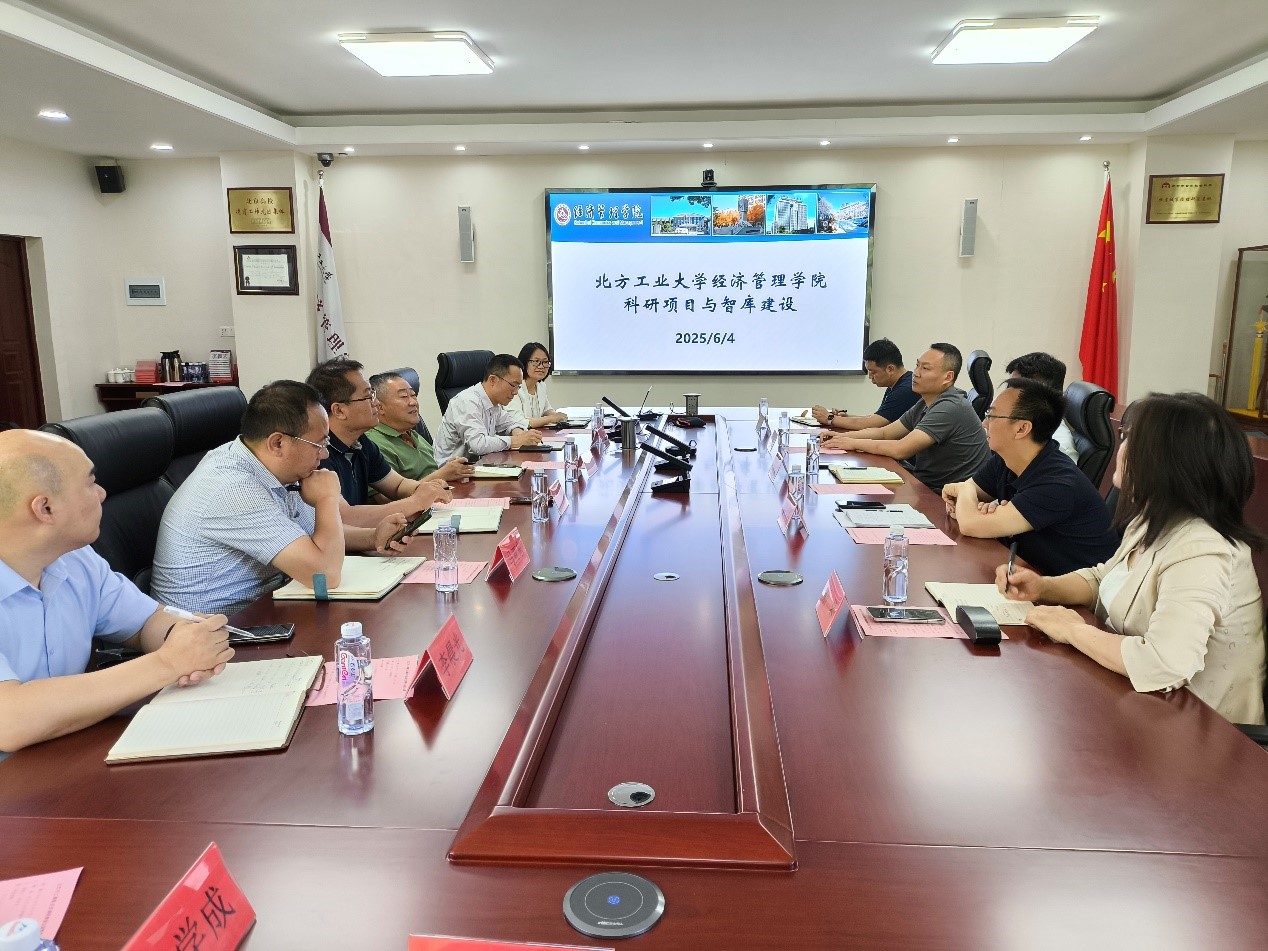 6月4日上午,北京市工商联党组成员、副主席李振坤,一级调研员、调研室主任罗筱,调研室副主任杨见勇和石景山区工商联党组书记、副主席斯琴,工作人员张振一行,走访beat365唯一官方网站,调研我校作为“北京市工商联参政议政智库单位”的智库工作开展情况。beat365唯一官方网站院长赵继新、党委书记谢朝阳、副院长蒋贵凰和孙强,以及智库工作骨干教师参加了座谈,座谈会由我院科研副院长蒋贵凰主持。