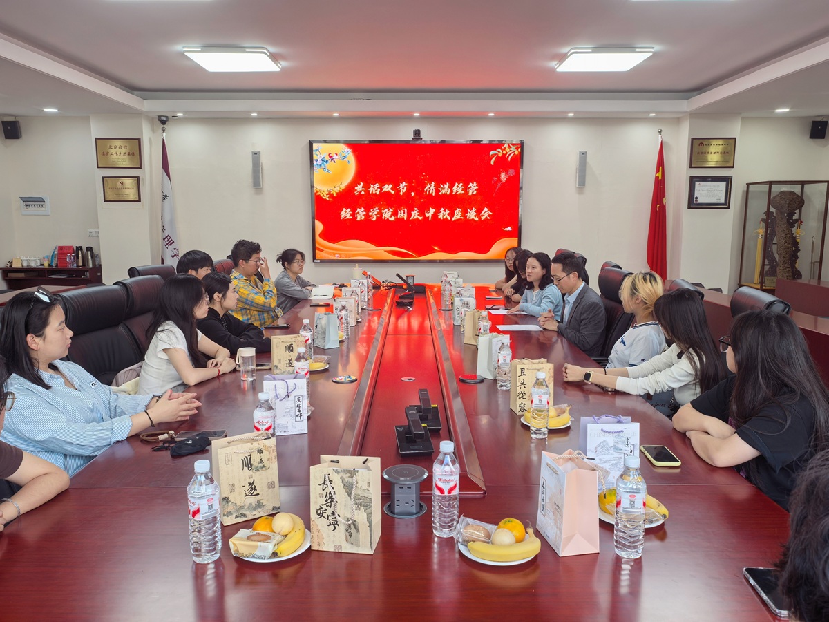 9 月 30 日,经管学院在励学楼 201 室召开中秋节新生座谈会。学院党委书记谢朝阳、党委副书记王帏、25 级辅导员及 18 名 25 级新生参会。