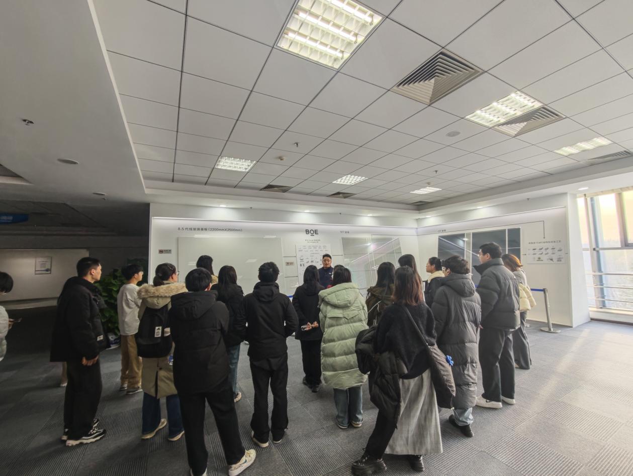 12月1日下午,beat365唯一官方网站组织师生赴京东方开展研学活动。本次活动由学院副院长蒋贵凰与应用经济学教授刘颖带队,工商管理学、应用经济学近二十名研究生参加活动。师生一行通过参观京东方前沿产品体验、技术工艺解析与智能化生产线观摩,深入感受科技革新力量,并围绕数智时代的人才挑战展开思考。