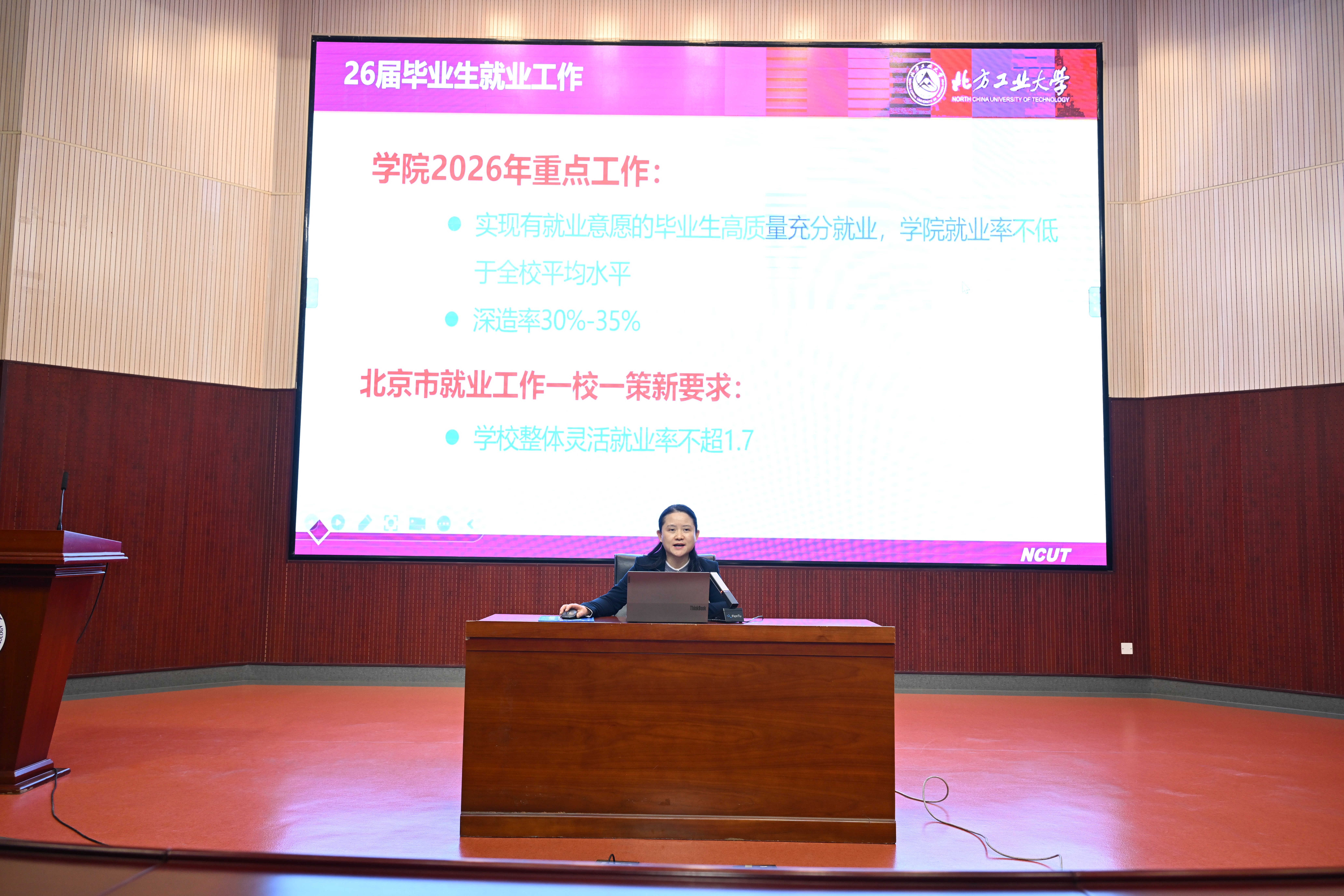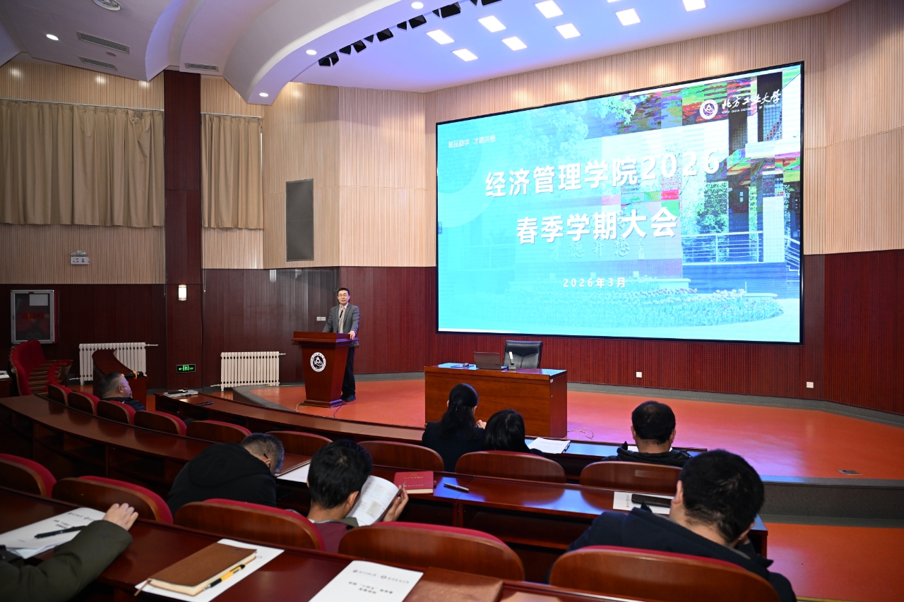 会上,赵继新院长全面回顾了学院“十四五”期间在党建、人才培养、教学工作、学科建设、科研业绩、社会服务、师资队伍建设、国际化发展等八个方面取得的长足进步,客观分析了当前发展面临的机遇与挑战。围绕学校“十五五”规划及今年重点工作,梳理了2026年学院工作的总体思路和重点任务,部署了筹备建校80周年活动、提升治理水平、深化课程思政与人才培养、强化科研智库建设、优化学科布局、抓实就业、加快国际化建设、建强师资队伍等任务。号召全体教师要以学院“十五五”规划为指引,以“转观念、重水平、强应用”为导向,抢抓发展机遇,主动担当作为,在新起点上推动学院“4121”转型发展取得实质进展。