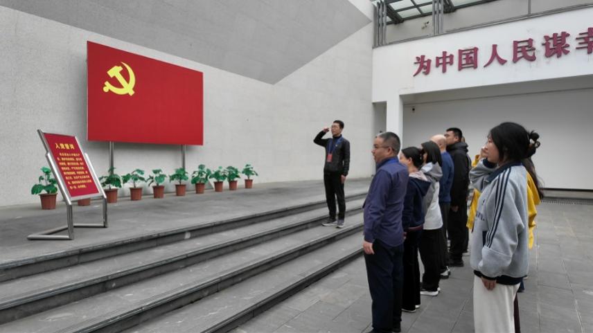 在扁担精神纪念馆,学员们了解了林州石板岩供销社老一辈职工,以扁担为工具、翻山越岭服务山区群众的奋斗历程。谢朝阳书记作为领誓员,带领全体党员重温入党誓词,激励着每一位党员不忘入党初心,为新时代经管学院新商科建设添砖加瓦。