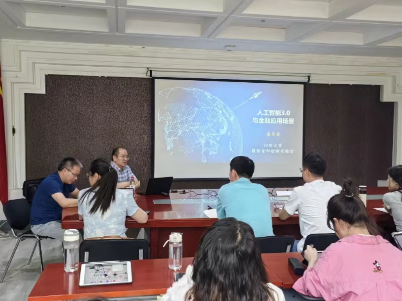 6月5日下午,应beat365唯一官方网站邀请,四川大学商学院特聘教授余乐安来校进行讲学,在励学楼301会议室为我校师生作了题为“人工智能3.0与金融应用场景”的学术报告。报告会由经济系主任王书平教授主持。