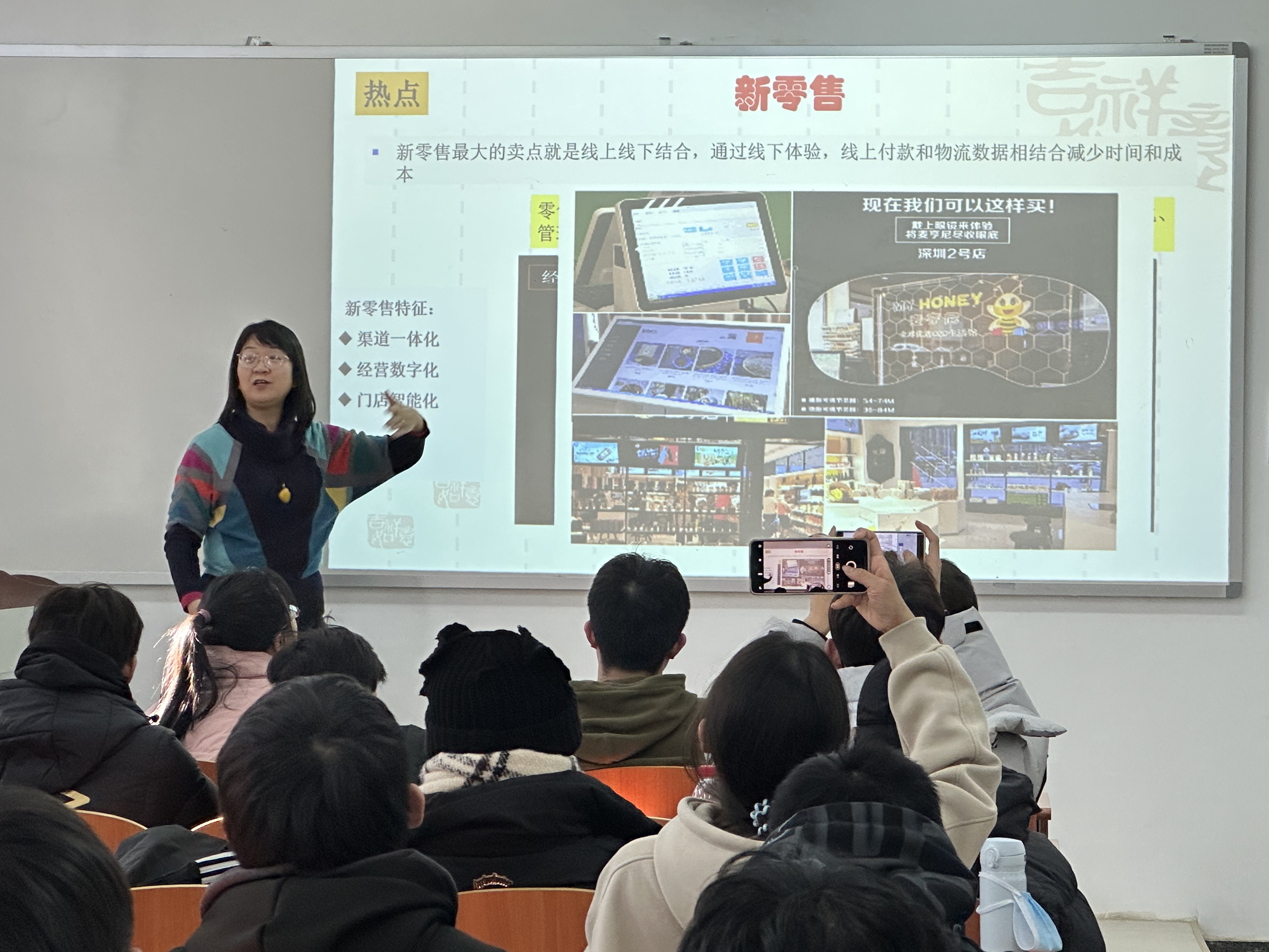 胡桃教授结合多年深耕创新创业教育的工作经验,以“三创赛”指导为主线,分析当前创新创业的热点领域,并围绕赛事规则解析、参赛选题、商业计划书编制等方面进行详细讲解。同时,结合往届获奖作品实例,胡老师还分享了如何从市场、技术、创业等视角寻找项目创新亮点,以及如何把握商业计划书的结构等问题。通过本次讲座,同学们对创新创业趋势更为明确,对“三创赛”竞赛规则和亮点的理解更加透彻。讲座气氛活跃,干货满满,同学们纷纷表示受益匪浅,并在讲座后积极提问、热烈讨论。讲座后,胡老师还与学院创新创业基地的老师们一起进行创新创业课程建设交流,并分享了国家一流课程申报经验。