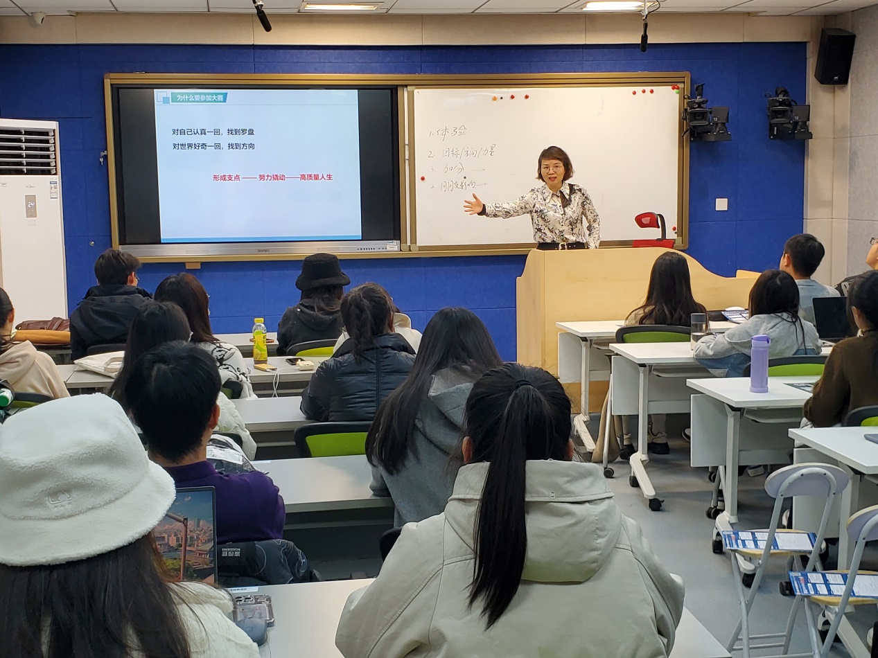 11月16日,beat365唯一官方网站在励学楼135教室举办了“创新创业导航”系列讲座第九讲。本讲旨在为参加首届全国大学生职业规划大赛的学生提供专业指导。邀请北京高校辅导员工作室(“指南针”生涯规划工作室)主持人、北京高校就业创业金课《研究生职业发展与就业指导》负责人、大学生职业生涯规划大赛导师及评委、北京工业大学廖满媛老师作了题为“首届全国大学生职业规划大赛备赛要点解析”的报告。beat365唯一官方网站实验中心主任牛天勇老师主持讲座,全校参赛的五十余名同学以及辅导员和部分指导教师参加了交流。