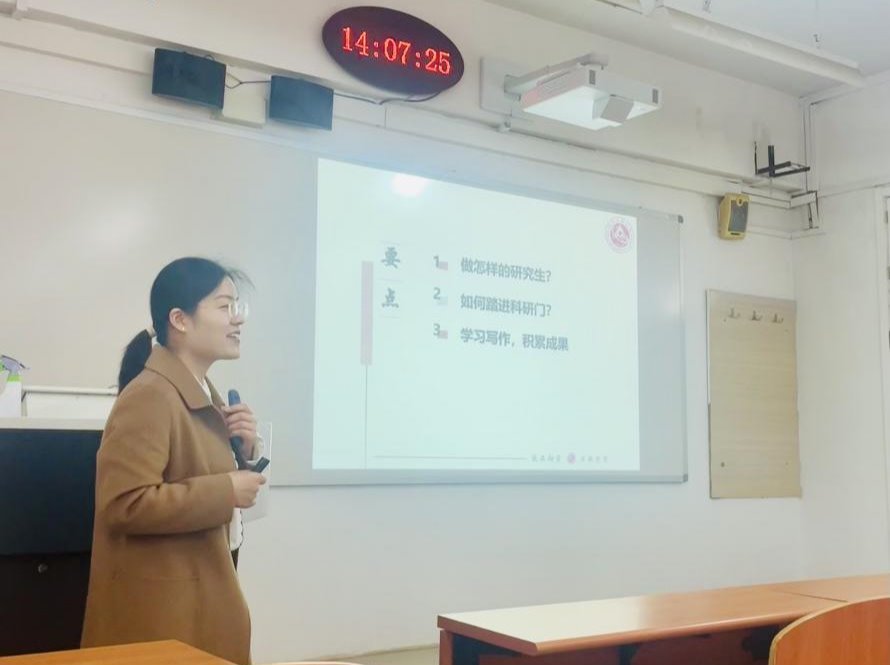 刘老师首先通过自己的求学之路为学生指点迷津,告诫同学们在求学道路的每个阶段,纠结和迷茫是正常的现象,但作为研究生需要思考三方面的问题:1)做怎样的研究生;2)如何踏进科研门;3)如何通过学习和写作积累成果,并以此展开讲座的内容。然后刘老师通过一篇经典的论文,讲解研究论文的选题应当如何选,文献综述应当如何做,基础理论如何构建,研究方法如何选择,科研思维如何得到训练等。最后刘老师强调,不管用哪种研究方法、研究理论和研究方式来做科研,一定要守住学术道德底线,只有付出实践,锻炼自己的批判思维,形成乐观、自信的心态,才能打好科研的持久战,获得最后的成功。