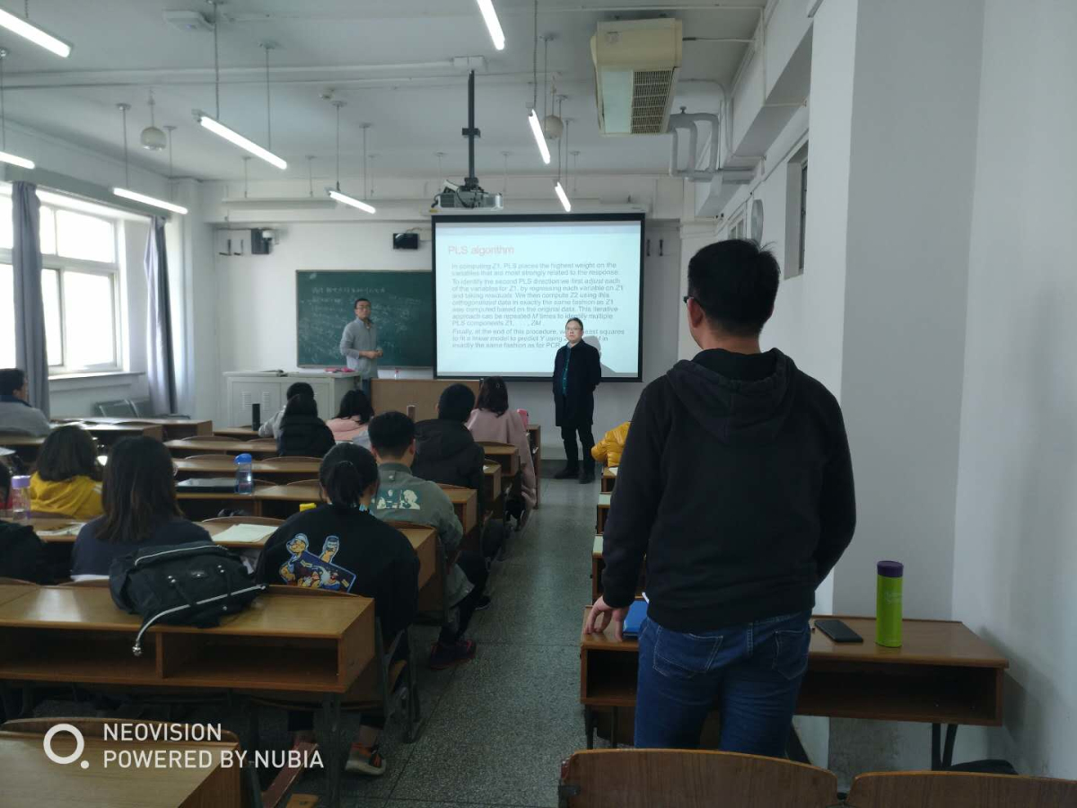 本报告主要从预测准确性和模型的可解释性两个角度介绍了高维数据的统计分析方法。报告首先基于模型方差介绍了预测准确性;其次重点讲述模型的可解释性问题,涉及子集选择、收缩算法、降维方法三个方面,子集选择中介绍了最优子集选择、向前选择、向后选择方法,收缩算法中介绍岭回归、Lasso方法,降维方法中介绍主成分分析方法、偏最小二乘法;最后,秦磊副教授还就师生提出的问题进行了交流讨论。