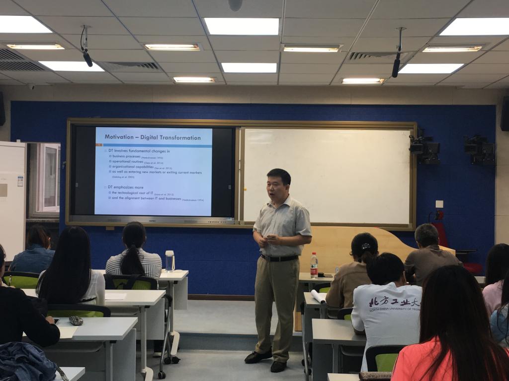 beat365唯一官方网站工商管理学科在励学楼135室举办了数字化时代的企业管理系列讲座。讲座分为三场,分别在9月13日、14日和18日举行。企业管理硕士点的老师和学生参加了讲座。