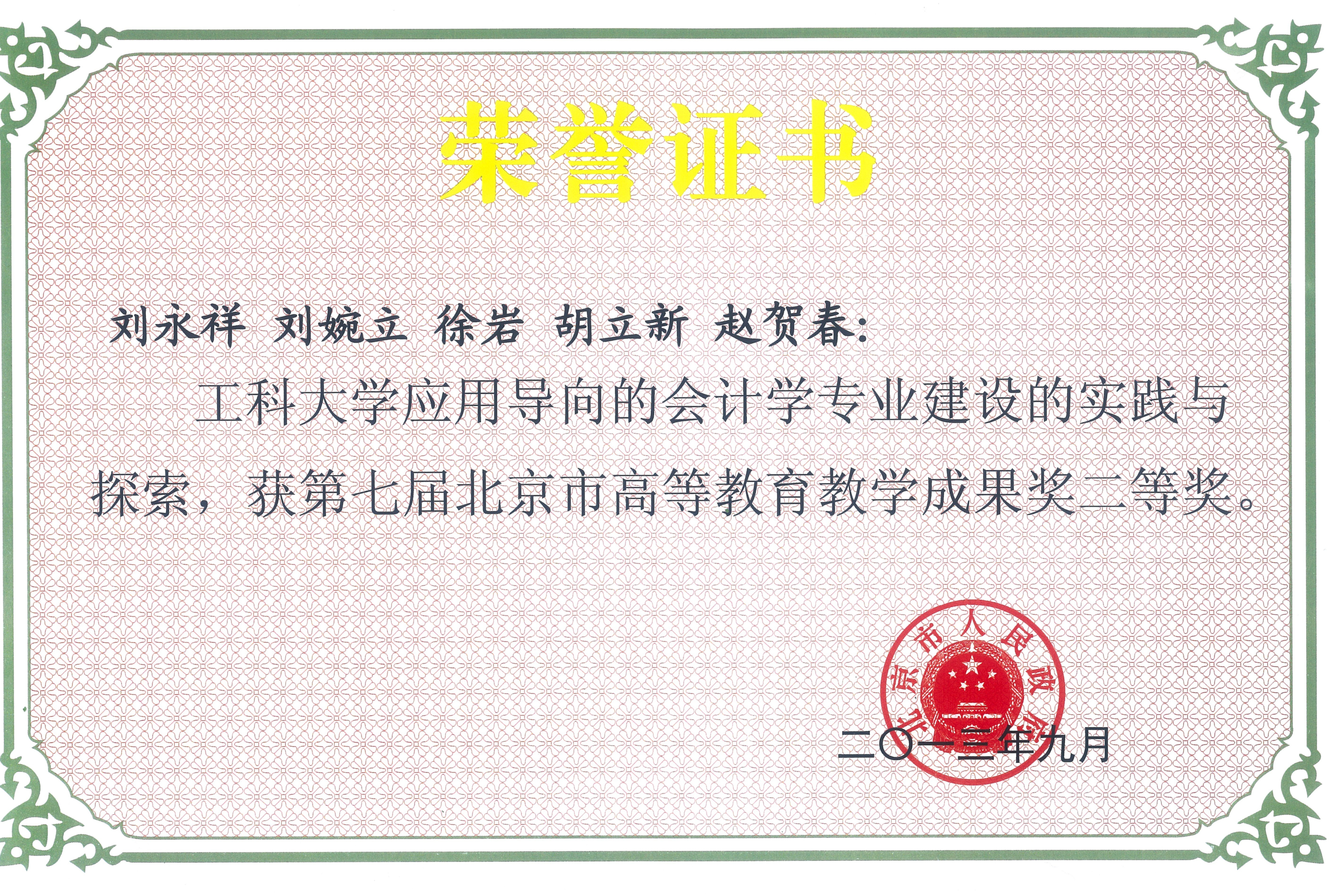 北京市高等教育教育教学成果二等奖 |