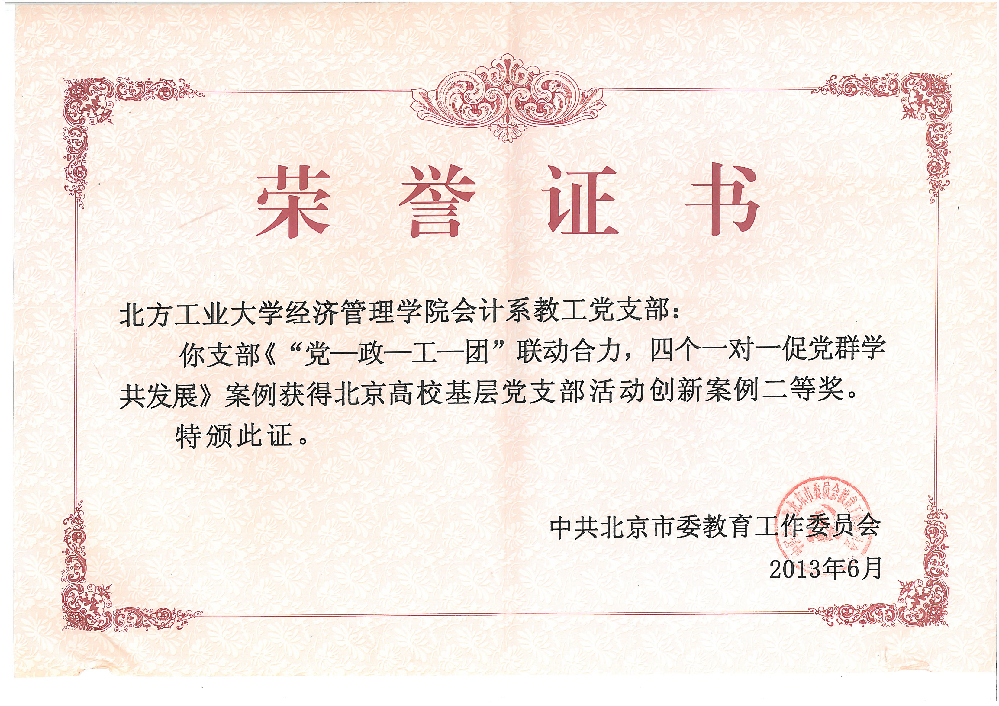 | 北京高校基层党支部活动创新案例二等奖 |