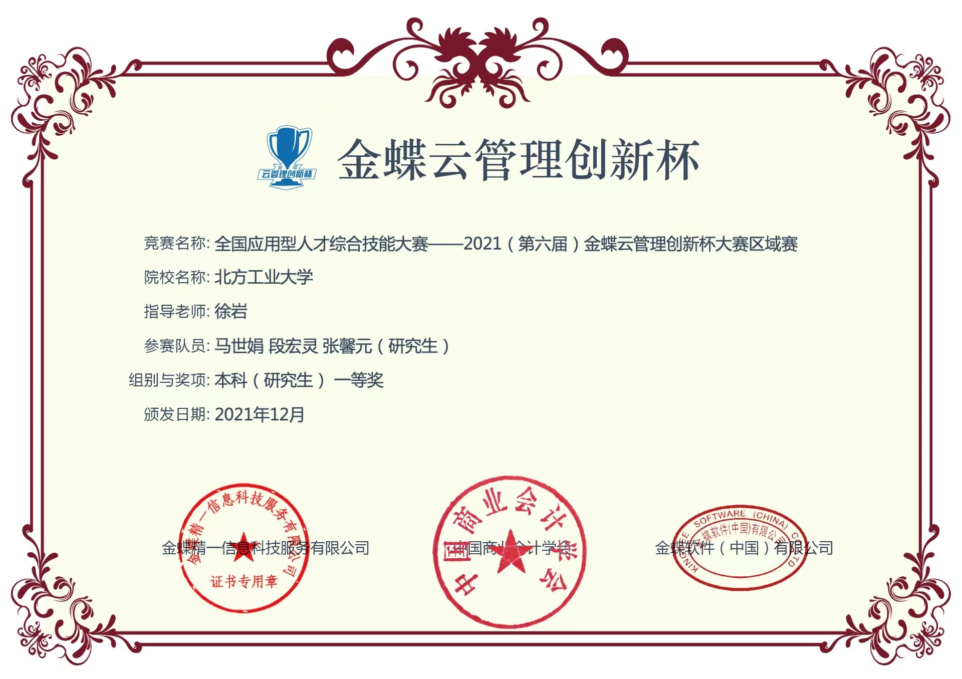 2021年金蝶云管理创新大赛国赛三等奖 |