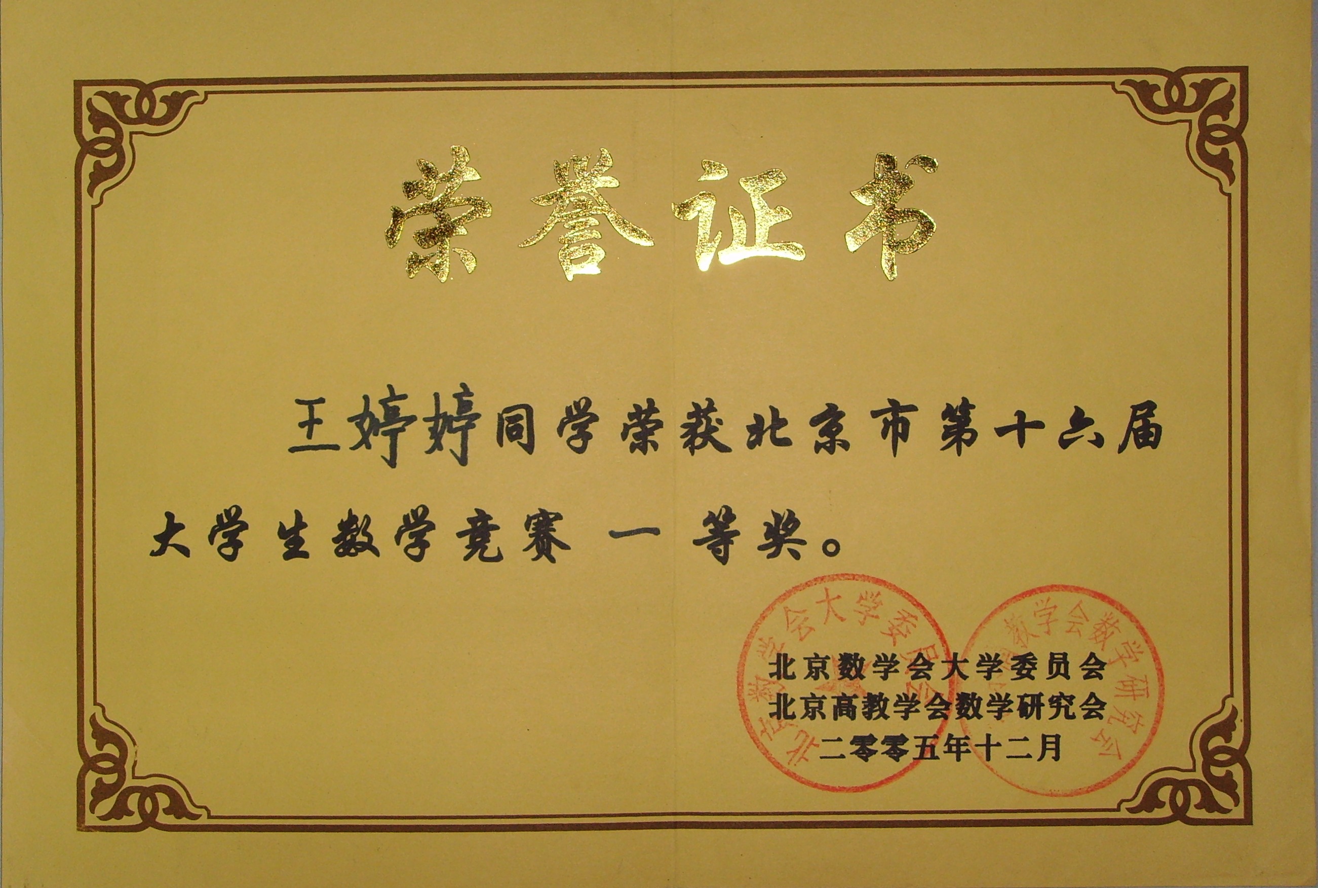 北京市数学竞赛一等奖 |