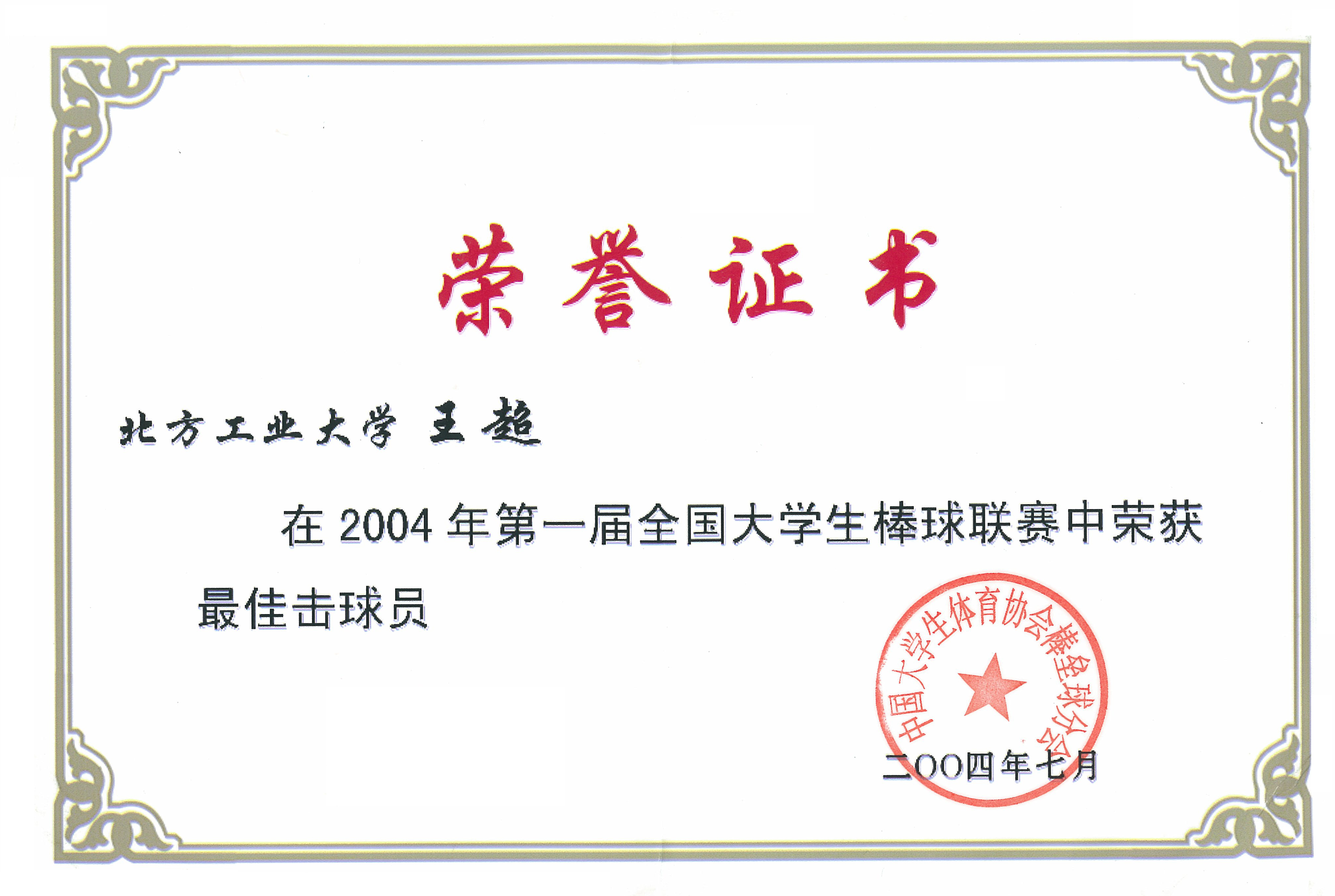 第一届全国大学生棒球联赛最佳击球员 |