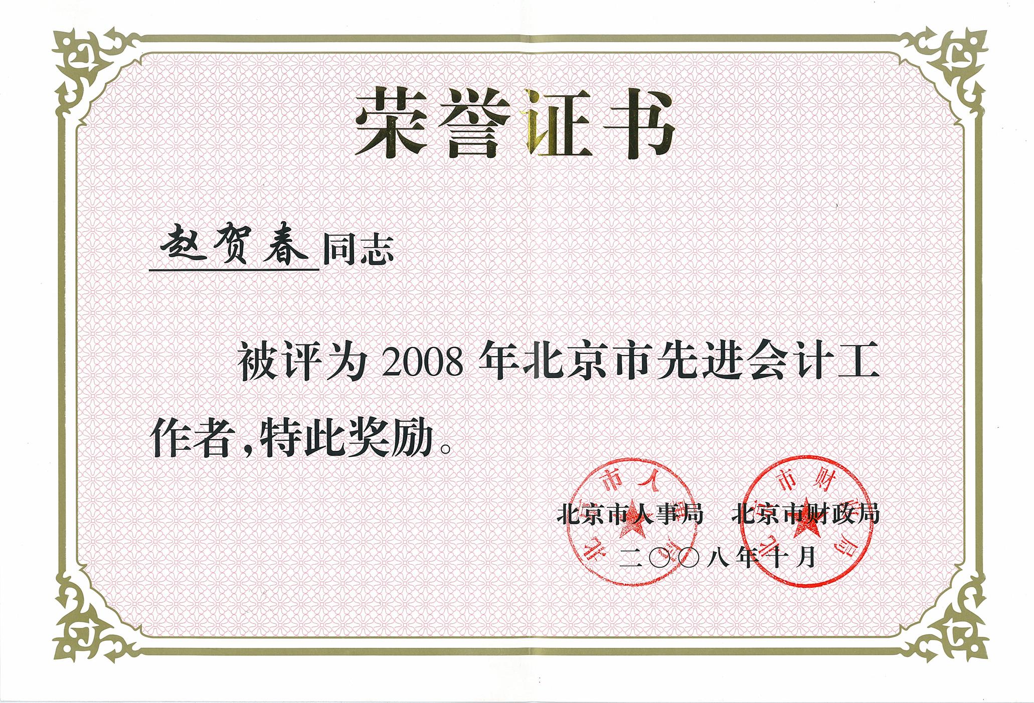 赵贺春 北京市先进会计工作者 |