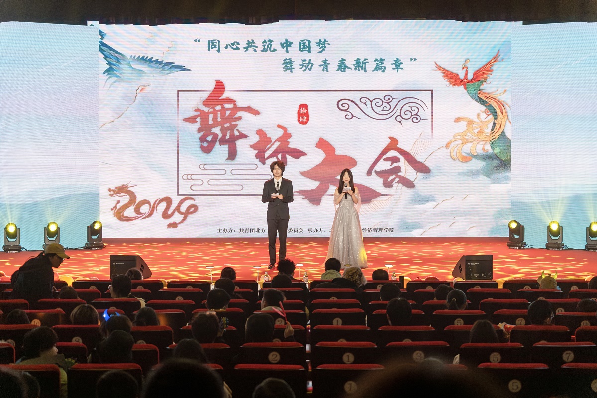 由校团委主办,经管学院承办的第35届大学生艺术节“同心共筑中国梦,舞动青春新篇章”舞林大会决赛于11月19日晚在图书馆报告厅举行。校党委副书记史贞军,学生工作部(研工部)部长孙宗瑞,校团委书记杨超,经管学院党委书记谢朝阳,各学院党委副书记、团委书记、辅导员和现场500多名观众一起观看了比赛。