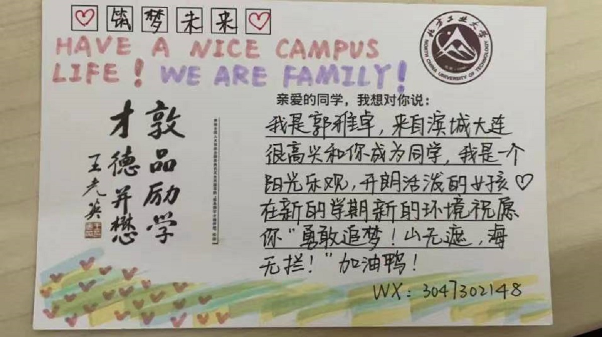 金秋9月,伴随北京秋高气爽的天气一同到来的,还有朝气蓬勃的2022级新生们。为使新生尽快适应大学生活,为同学们营造温馨难忘的入学体验,经管学院在开学初期开展为期一个月的“破冰信笺”活动。