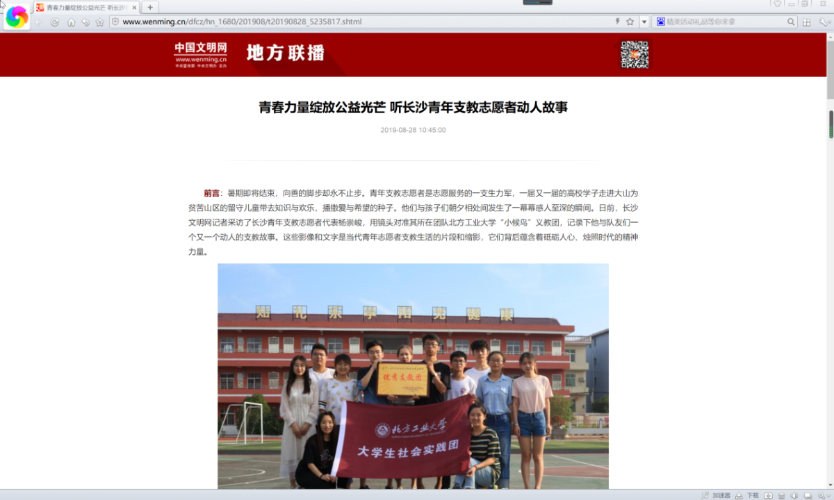 本次支教活动也被中国文明网,江西日报数字报,以及中青网(三下乡官网)等媒体大力报道。