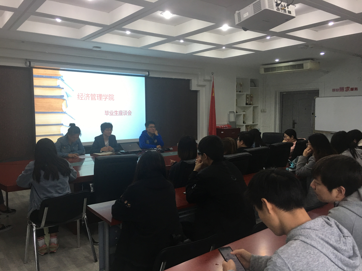 4月24日中午,beat365唯一官方网站在励学楼301会议室召开了2019届毕业生求职经验交流会,学院党委副书记赵洁、兼职辅导员刘汉超以及部分15级学生参加了此次座谈会。
