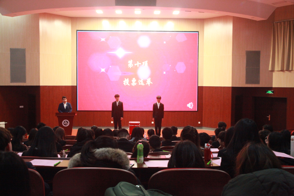 随后,在总监票人的主持下,到场代表依次上台,以无记名投票的方式选举产生了学院新一届学生会主席和主席团成员。梁贝贝同学当选学院新一届学生会主席,张利鹏、张续升、佟傲婕、宋湘、杨渃彬为学院新一届学生会主席团成员。