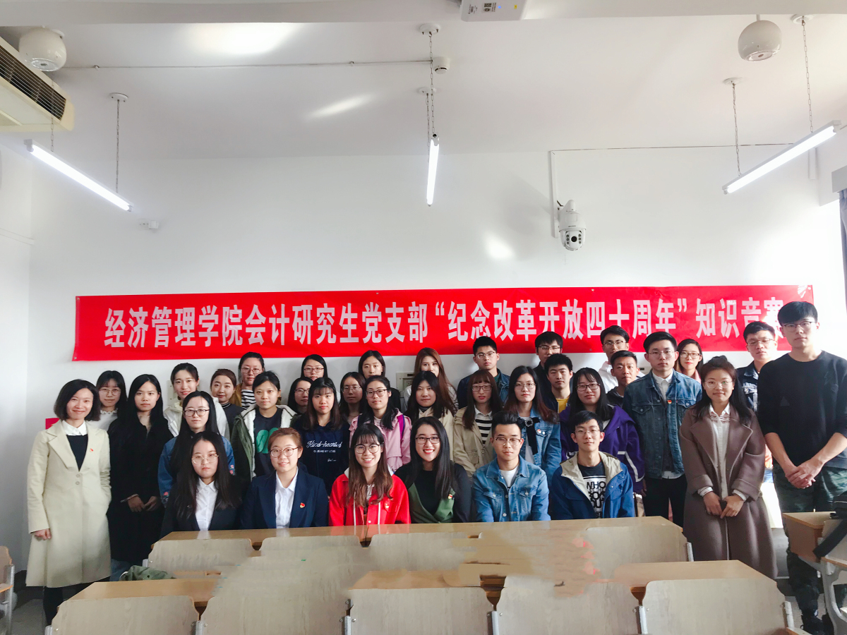 10月18日下午,beat365唯一官方网站会计研究生党支部于励学楼519教室开展了“庆祝改革开放四十周年”主题知识竞赛活动,来自会计研究生党支部的四十名党员、预备党员和积极分子参与了本次竞赛活动。