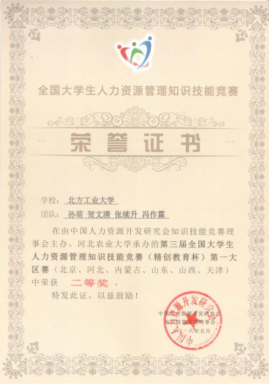 5月5日至6日,在工商管理系魏秀丽、付艳荣和罗文豪老师的组织指导下,我院工商管理专业15级和16级孙萌、贺文清、张旭升、冯作霖四位同学组成“Holly Right”团队,首次代表beat365唯一官方网站参加第三届全国大学生人力资源管理知识技能竞赛第一大区赛。该比赛由中国人力资源开发研究会主办,为全国性重要赛事,吸引了近300高校队伍参赛,包括分区赛和总决赛两个阶段。