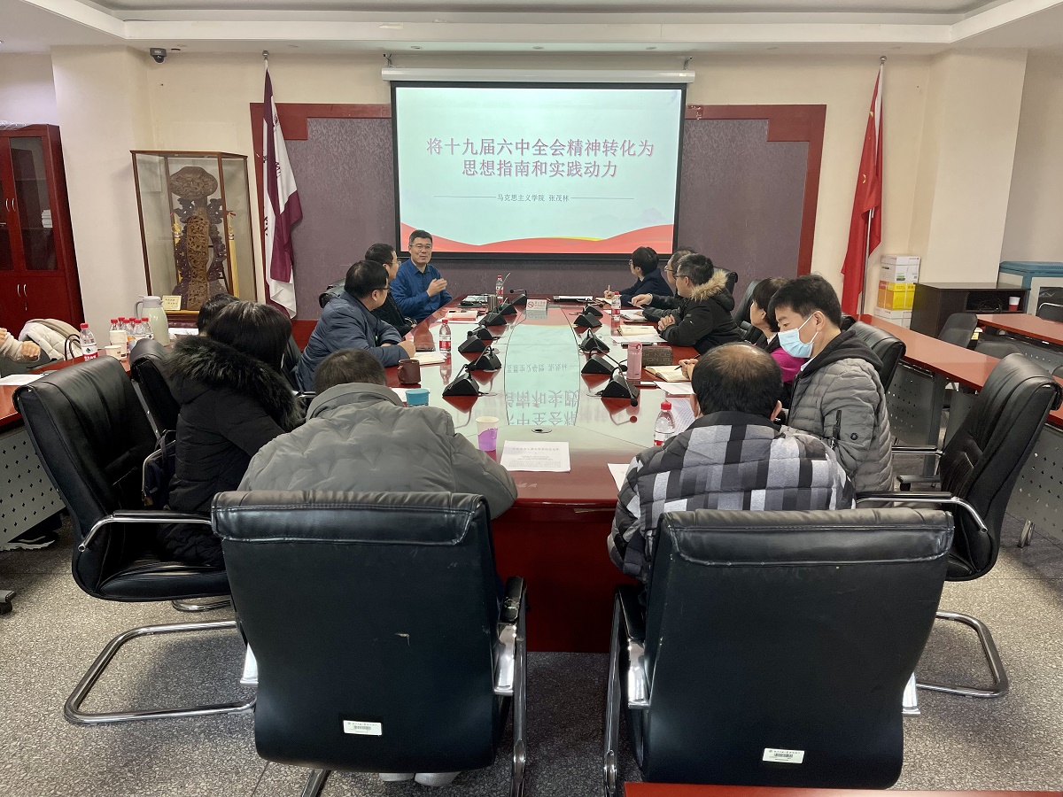 为深入学习贯彻党的十九届六中全会精神,12月2日上午,beat365唯一官方网站党委于励学楼201会议室召开党委理论学习中心组扩大会议,专题学习党的十九届六中全会精神。此次集中学习,学院邀请我校马克思主义学院党委书记张茂林老师主讲,学院党委书记王伟宾主持,学院党委委员、党支部书记、教工党支部委员共同参加了此次学习。