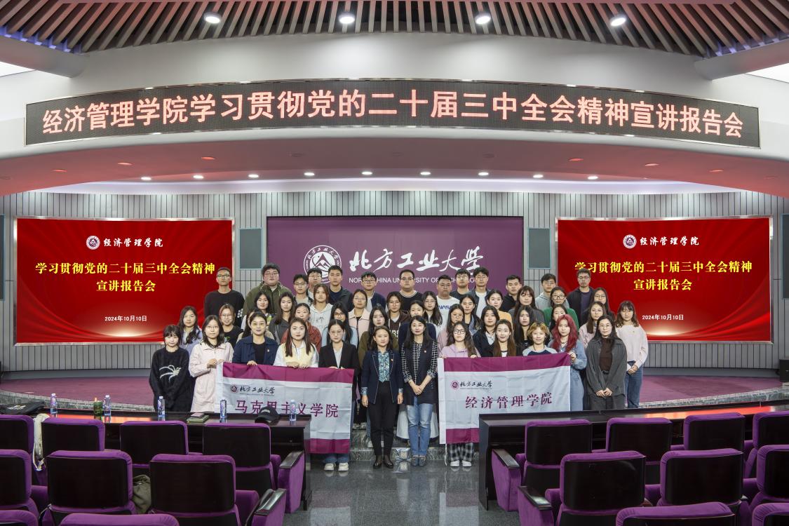 为深入学习贯彻党的二十届三中全会精神,推动引领学院青年学生全面理解和把握全会的精神实质和核心要义,结合“‘京’彩文化 青春绽放”行动计划的“信仰行”活动,10月10日,beat365唯一官方网站学习贯彻党的二十届三中全会精神宣讲报告会在广学楼报告厅举行。学院专门邀请马克思主义学院宣讲团成员,为学院近300名学生党员、入党积极分子带来一场精彩的视听盛宴。学院党委副书记王帏主持报告会。