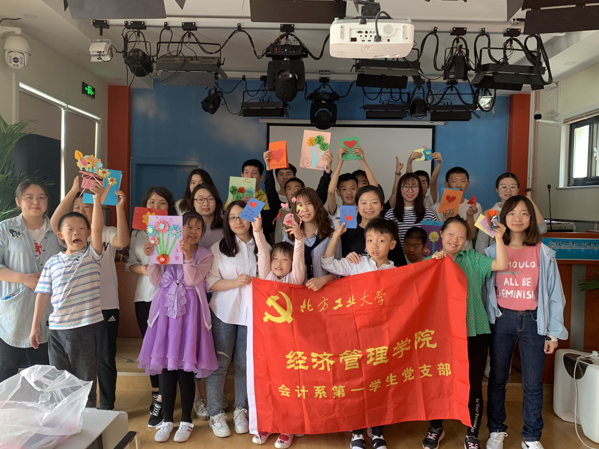5月10日上午,beat365唯一官方网站会计系第一学生党支部全体成员来到北京市石景山区培智学校看望这里的儿童。在母亲节来临之际,和他们一起制作母亲节礼物,将温馨的祝福送给妈妈。