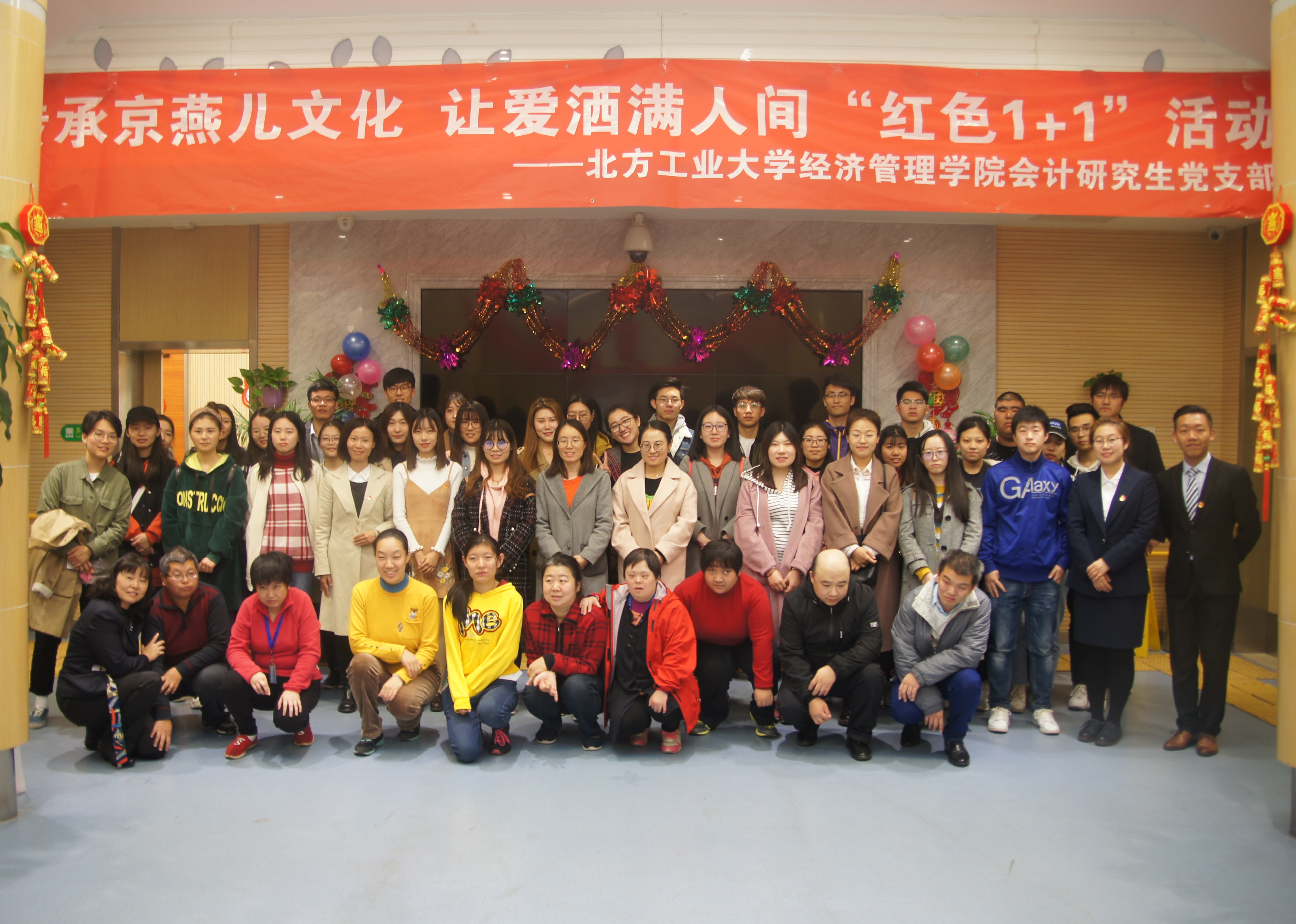 2018年11月1日下午,beat365唯一官方网站会计研究生党支部赴北京金融街街道残联职康站开展“传承京燕文化,让爱洒满人间”红色1+1活动,来自会计研究生党支部的四十名党员、预备党员和积极分子参与了本次活动。